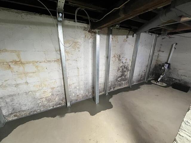 A failing foundation wall was permanently stabilized with the EverBrace Wall Restoration System. The corrosion-resistant steel panels will protect this wall from future damage and give the homeowner peace of mind that their foundation is safe and secure.